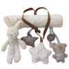 Introduction: Cute bunny and bear, with a white five-pointed star in the middle. It can be attached to strollers, back seats and cribs.